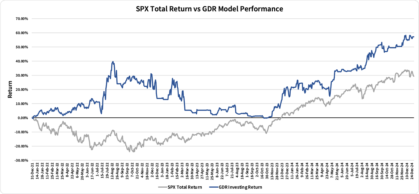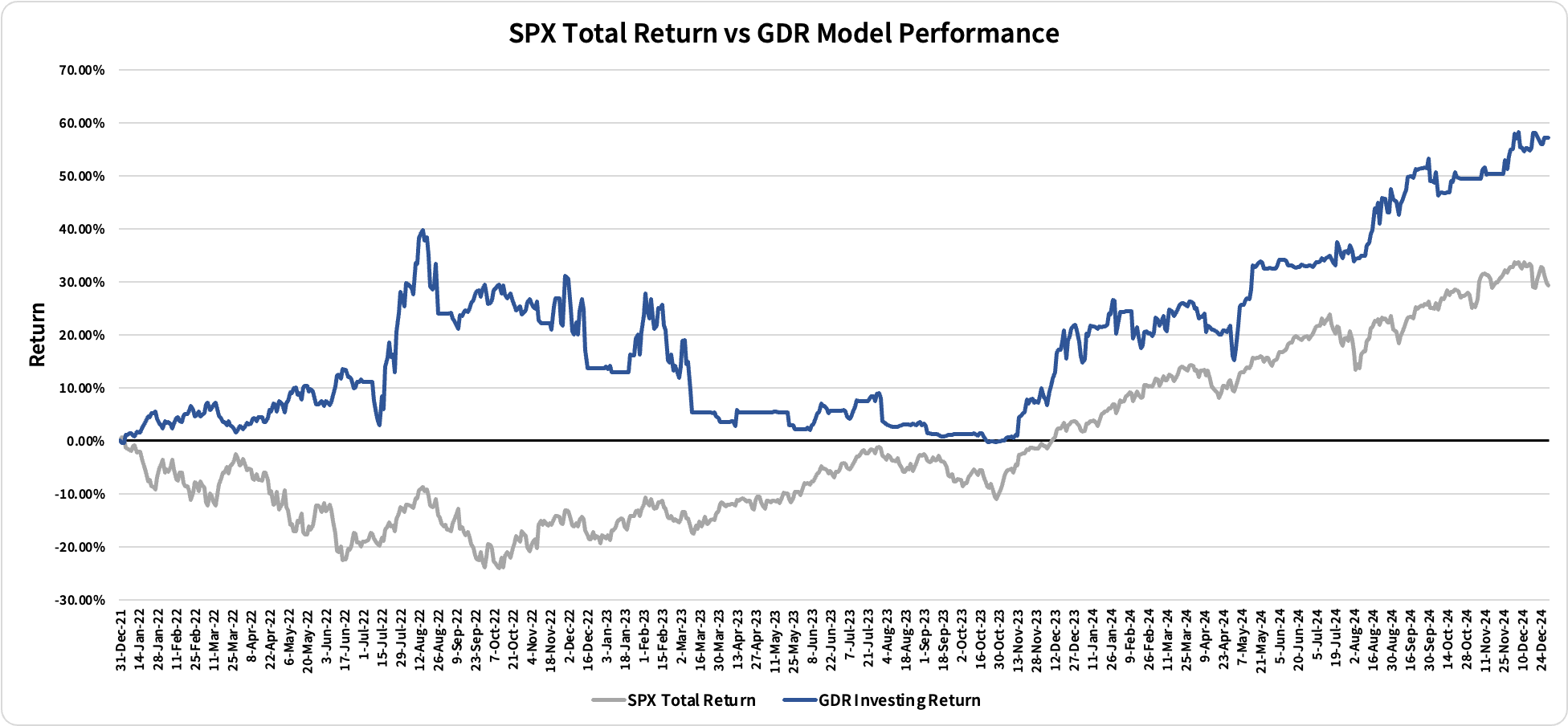 The GDR Model returned 30.11% vs the S&P 500’s Total Return of 25.02%, beating the index by 509 basis points.