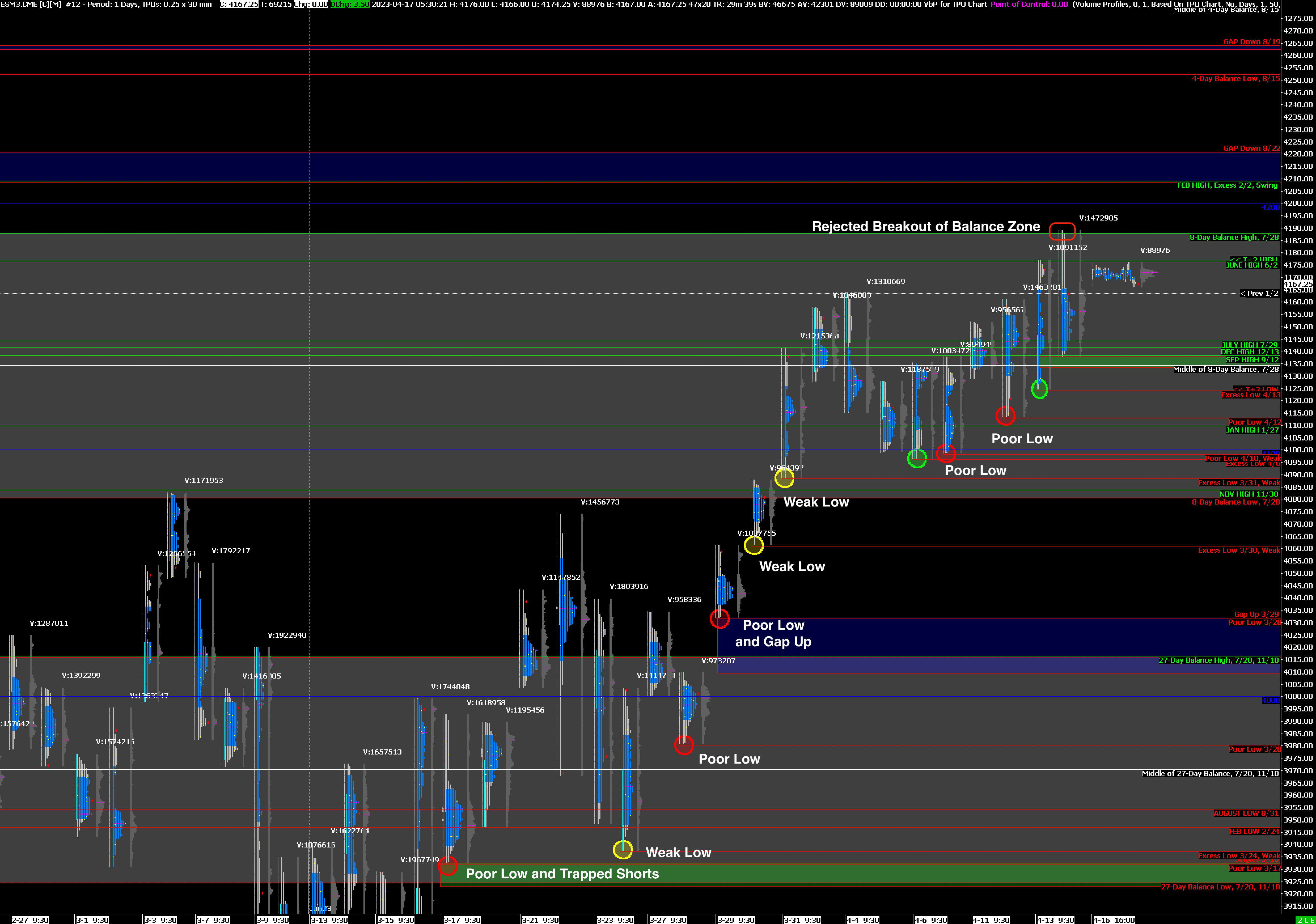 Should that attempt fail again, then watch out for the potential for more Liquidation. Sometimes markets have to break before they can head higher. The key to reading whether this will happen likely lies in figuring whether the market can trade and Accept below Friday’s Halfback. Keep in mind that Structure below remains poor.