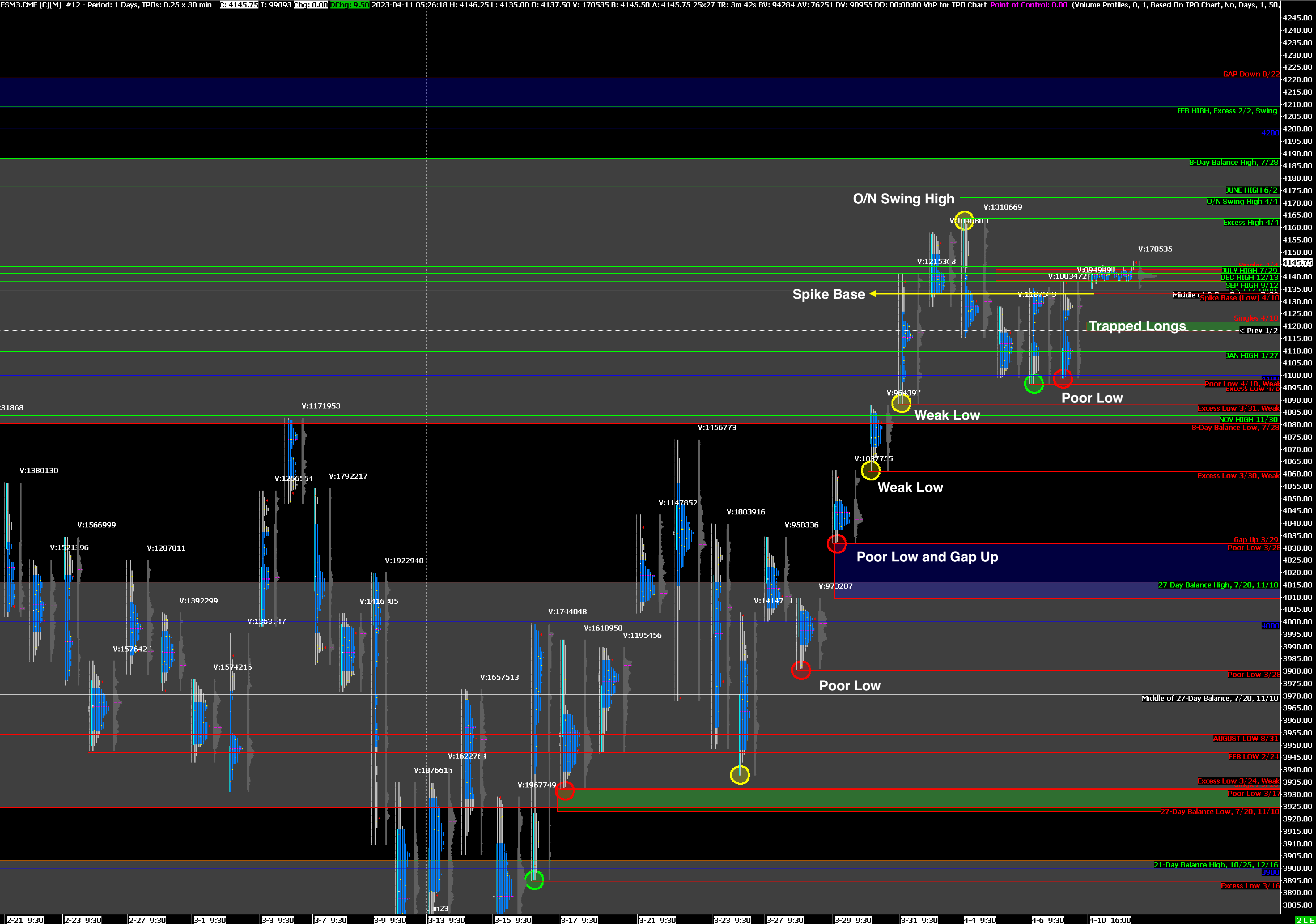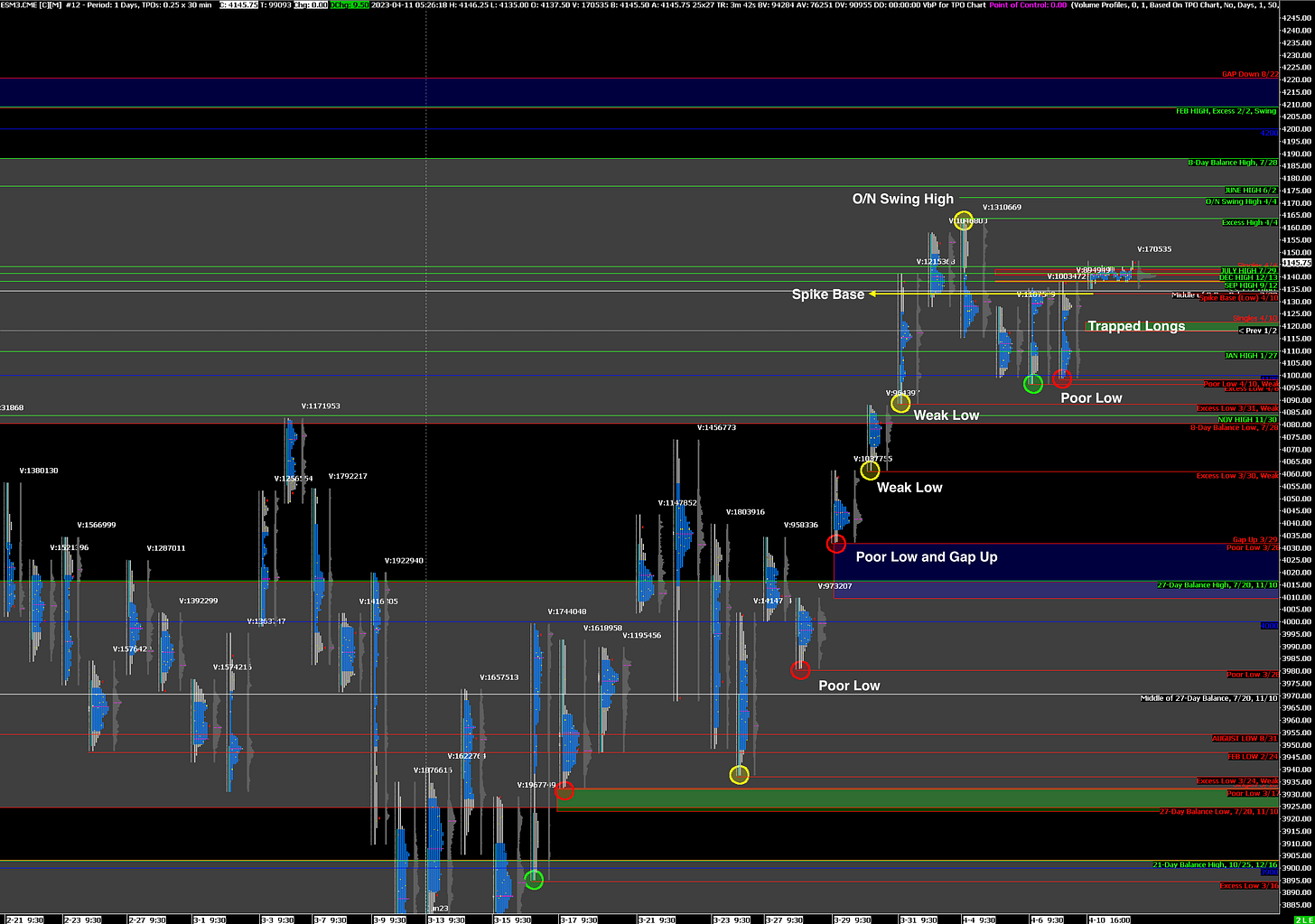 Yesterday the market was once again dominated by weak-hands traders as suggested by the Poor Low left behind. The day closed on a Spike Higher that for now seems to have been accepted in the Overnight session. Spike Trading Guidelines apply heading into today, however I would expect more Balanced day as the market awaits key CPI data tomorrow. Note that a Balanced day today doesn’t negate Bullishness in the near-term.