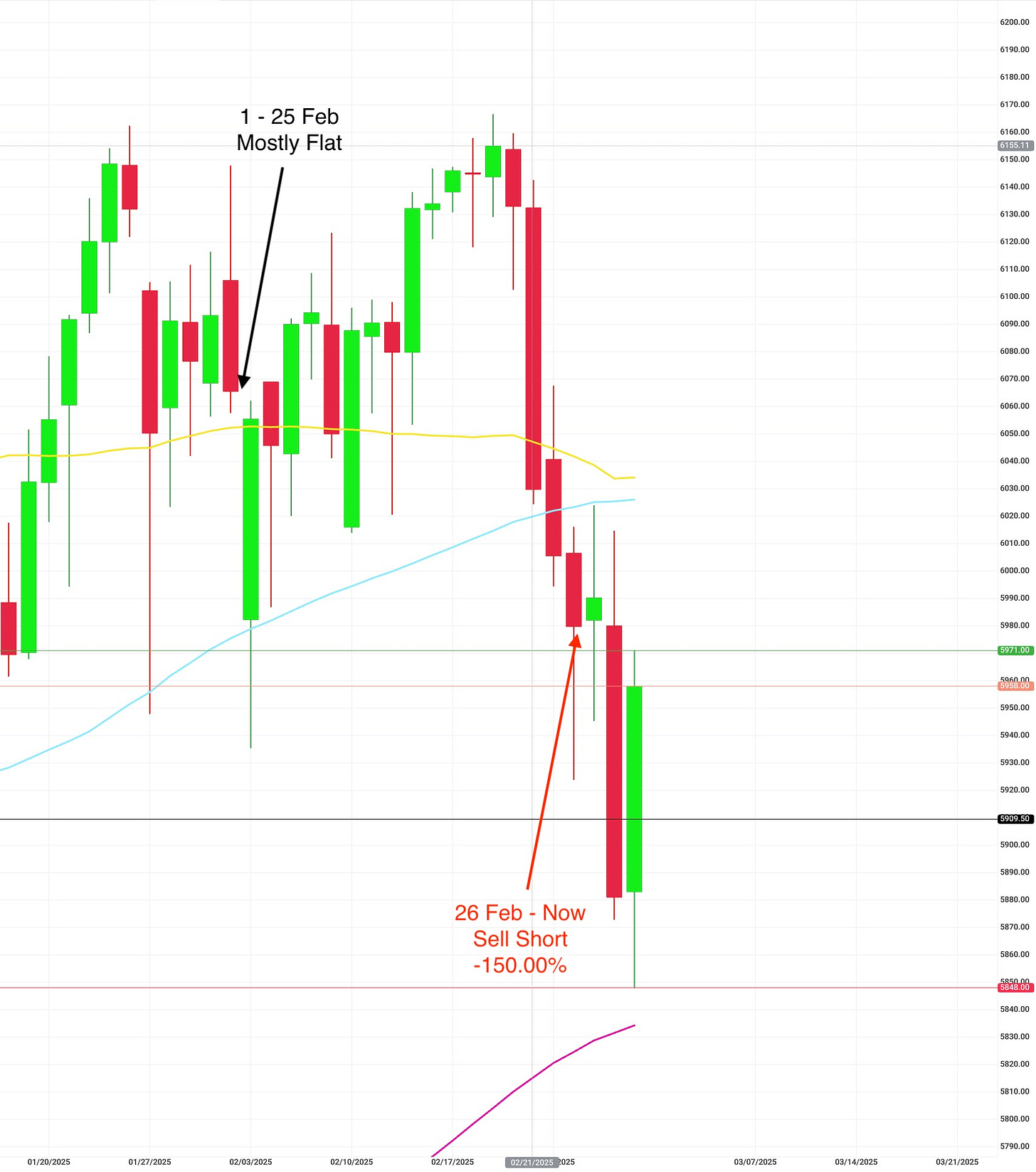 The model started out the month staying mostly flat from the close of 31 January all the way to the close of 25 February. This worked out well due to the choppy market conditions throughout most of the month.