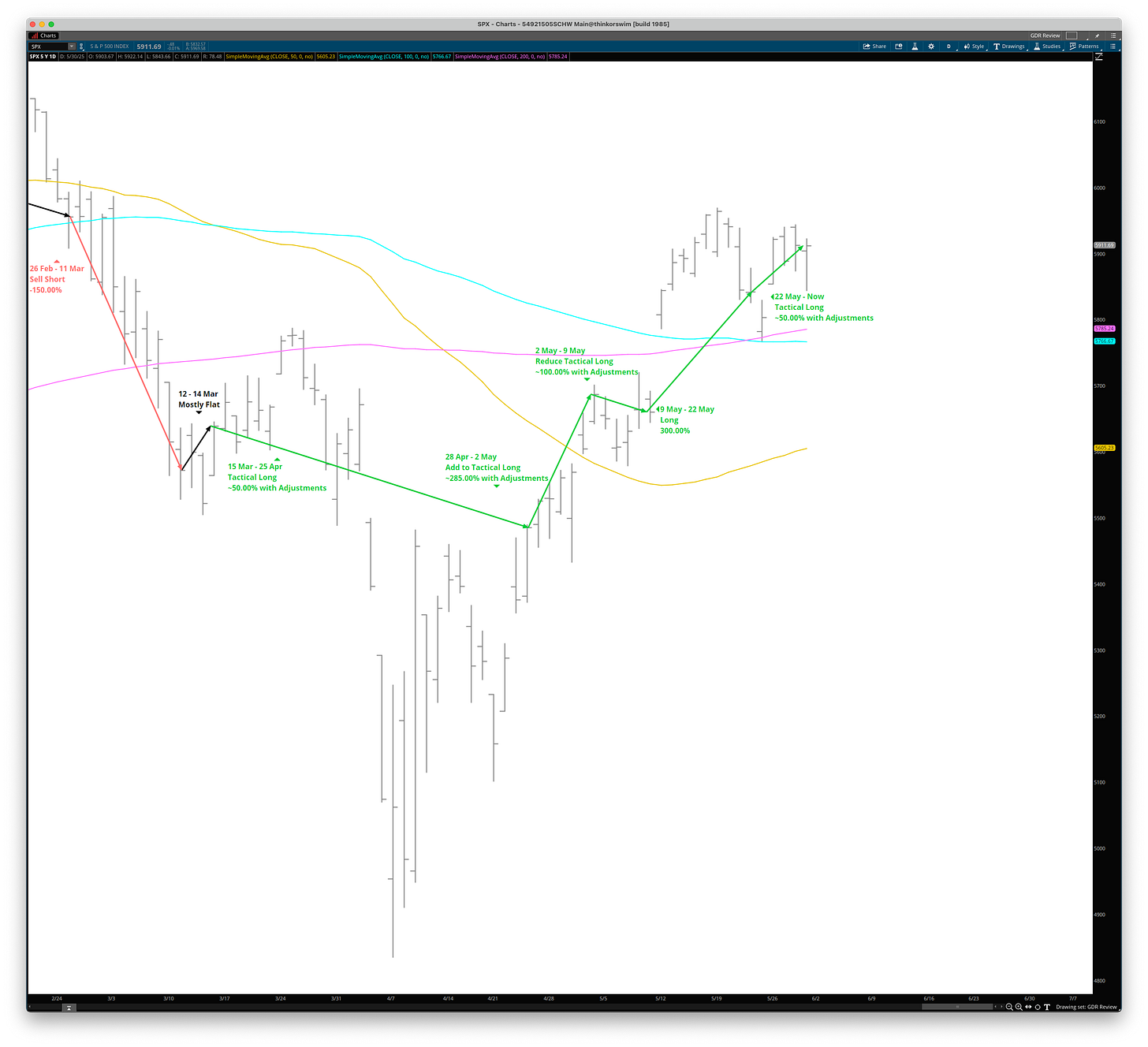The model started out the month holding the tactical long at around 285% of the portfolio’s value, which was carried over from the end of April.