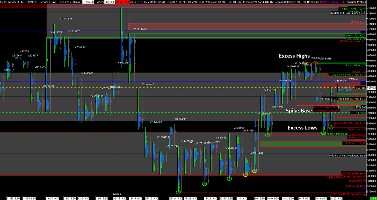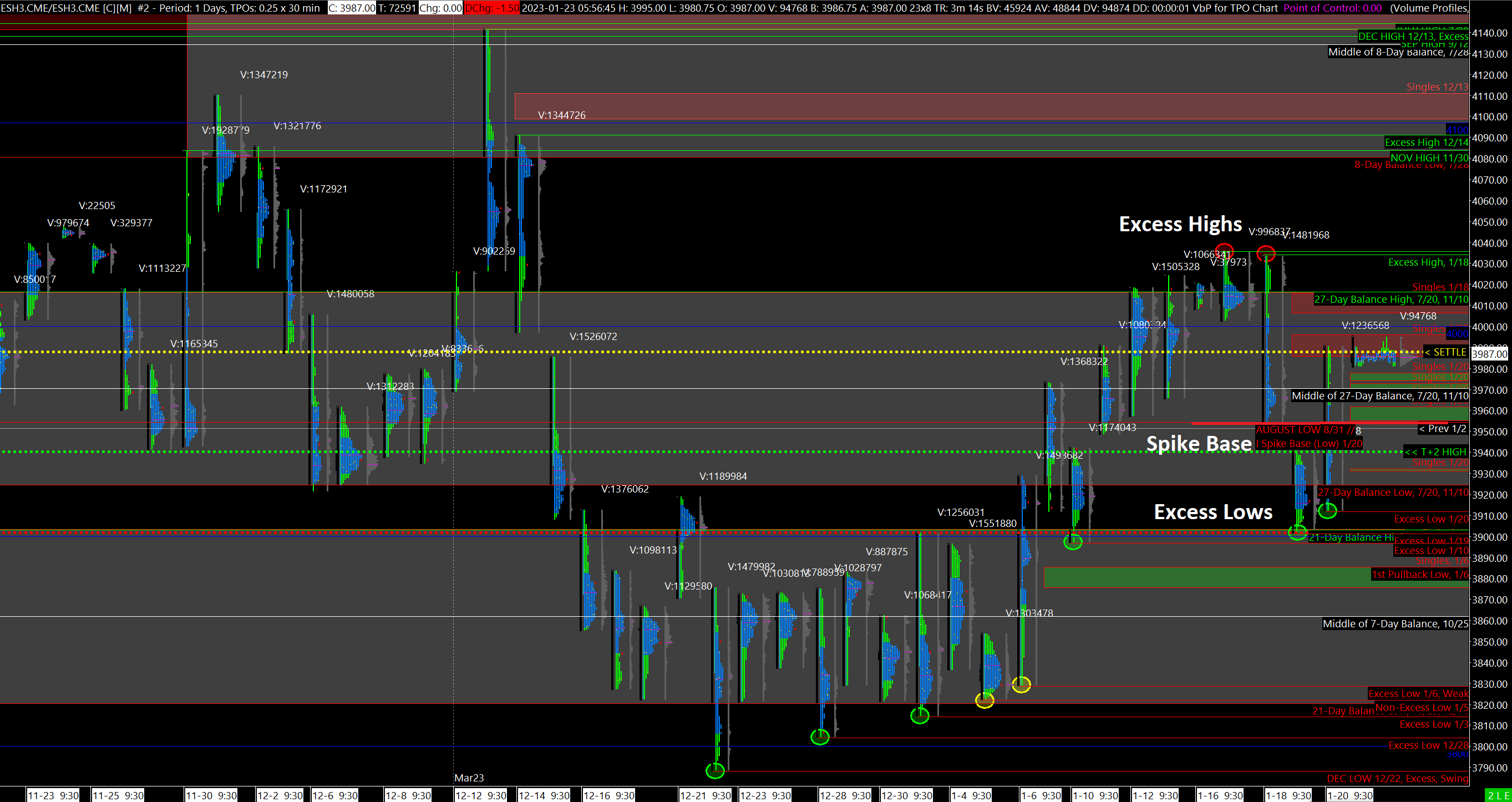 Last Friday the market broke out of its 1-day Balance in a rally that was most likely sparked by short-covering. The Structure left behind is Poor, but that can stand for longer than we might expect. More importantly Spike Rules apply today. The key level to keep in mind is 3954, i.e. the Base of the Spike. As a reminder here are the rules: