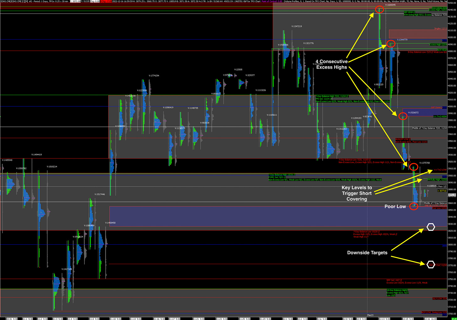There is a chance that inventories may be too short. The key levels that serve as a tip off would be the Afternoon Rally High from Friday at around 3896, and the T+2 (Settlement) Low just below 3910. Accepting above these levels would raise the odds of a near-term short-covering rally that would postpone repair of the Poor Low.