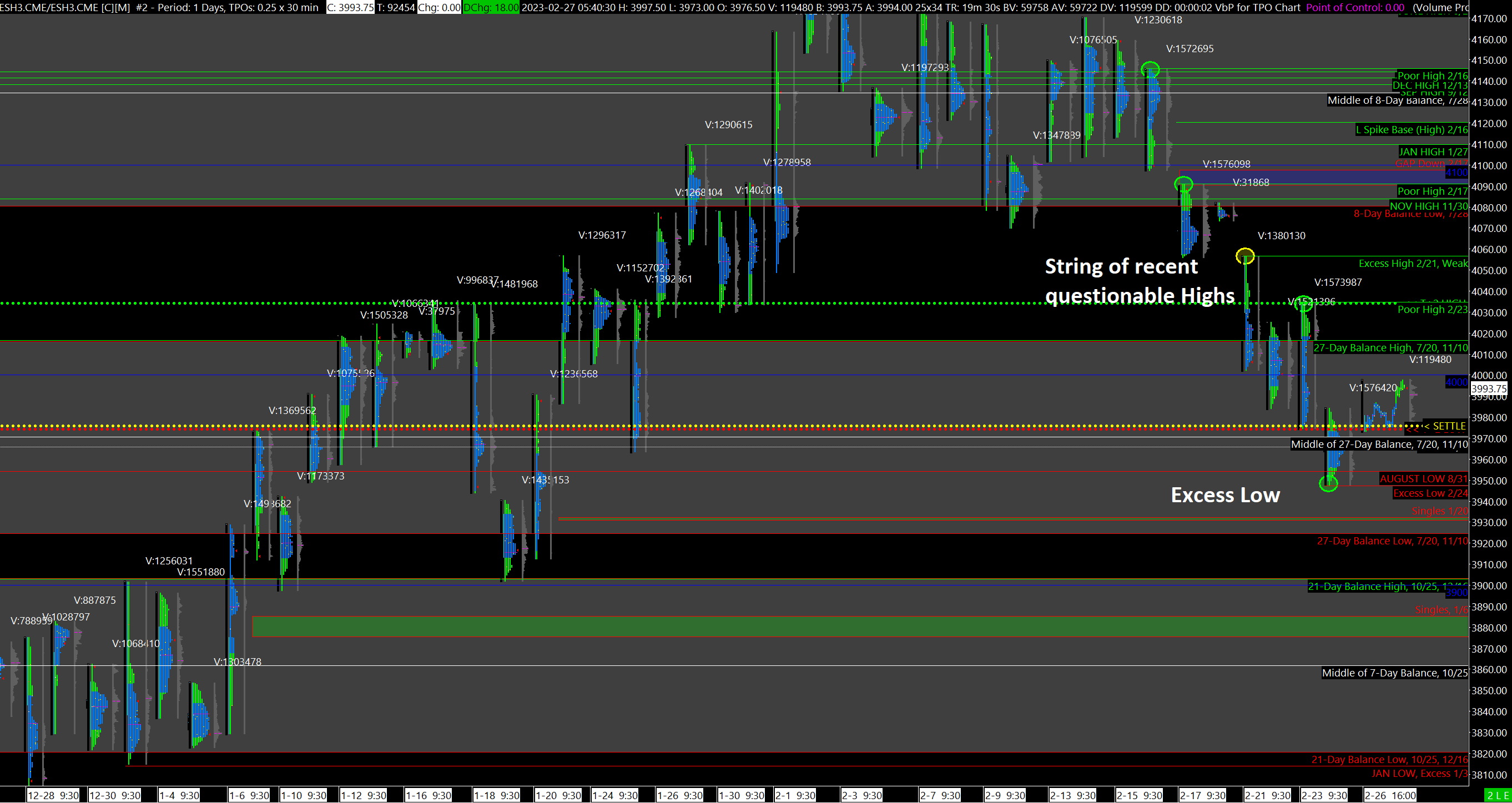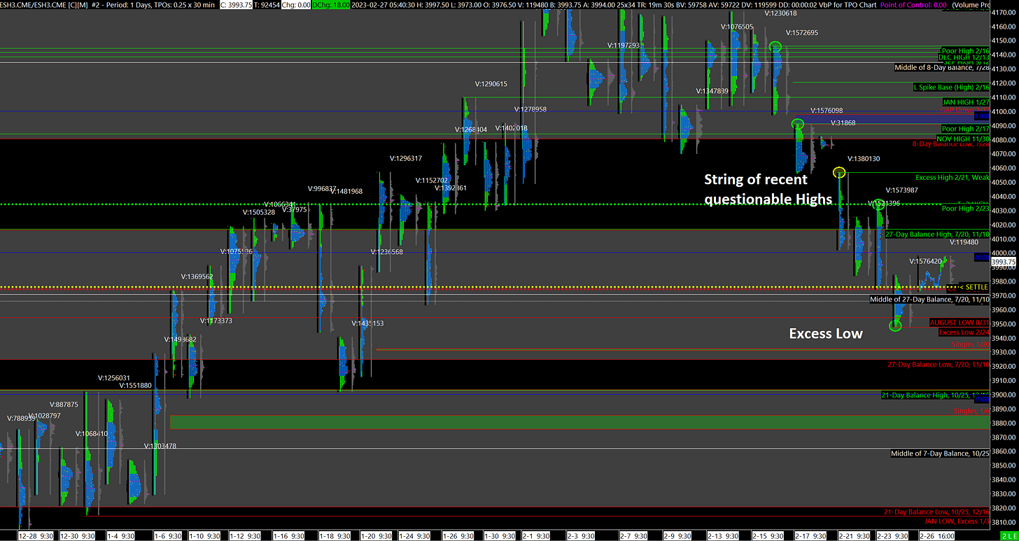 The current Market Profile analysis is relatively straightforward: several recent Highs are Questionable but short-term Short-Sellers remain in control. This will continue to dominate until longer-term players step in so don’t take the Market Profile read at face value and blindly go long. Poor Structure can stay in need of Repair for a long time.