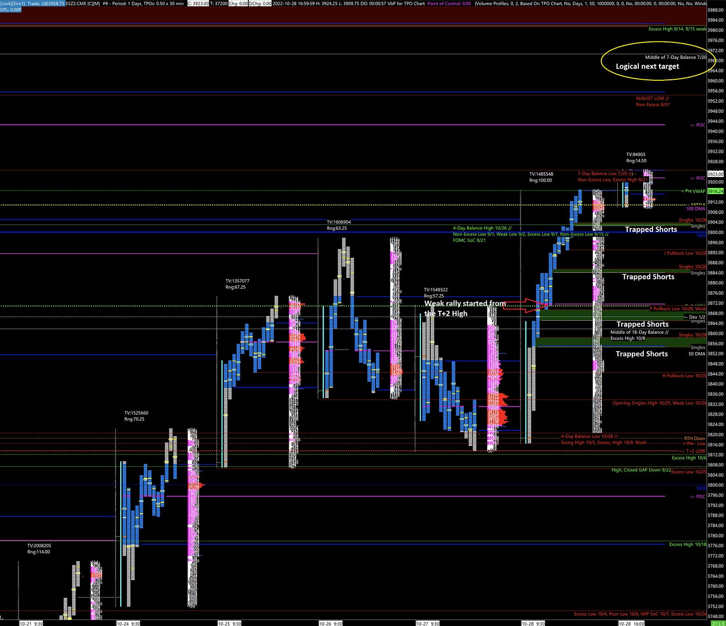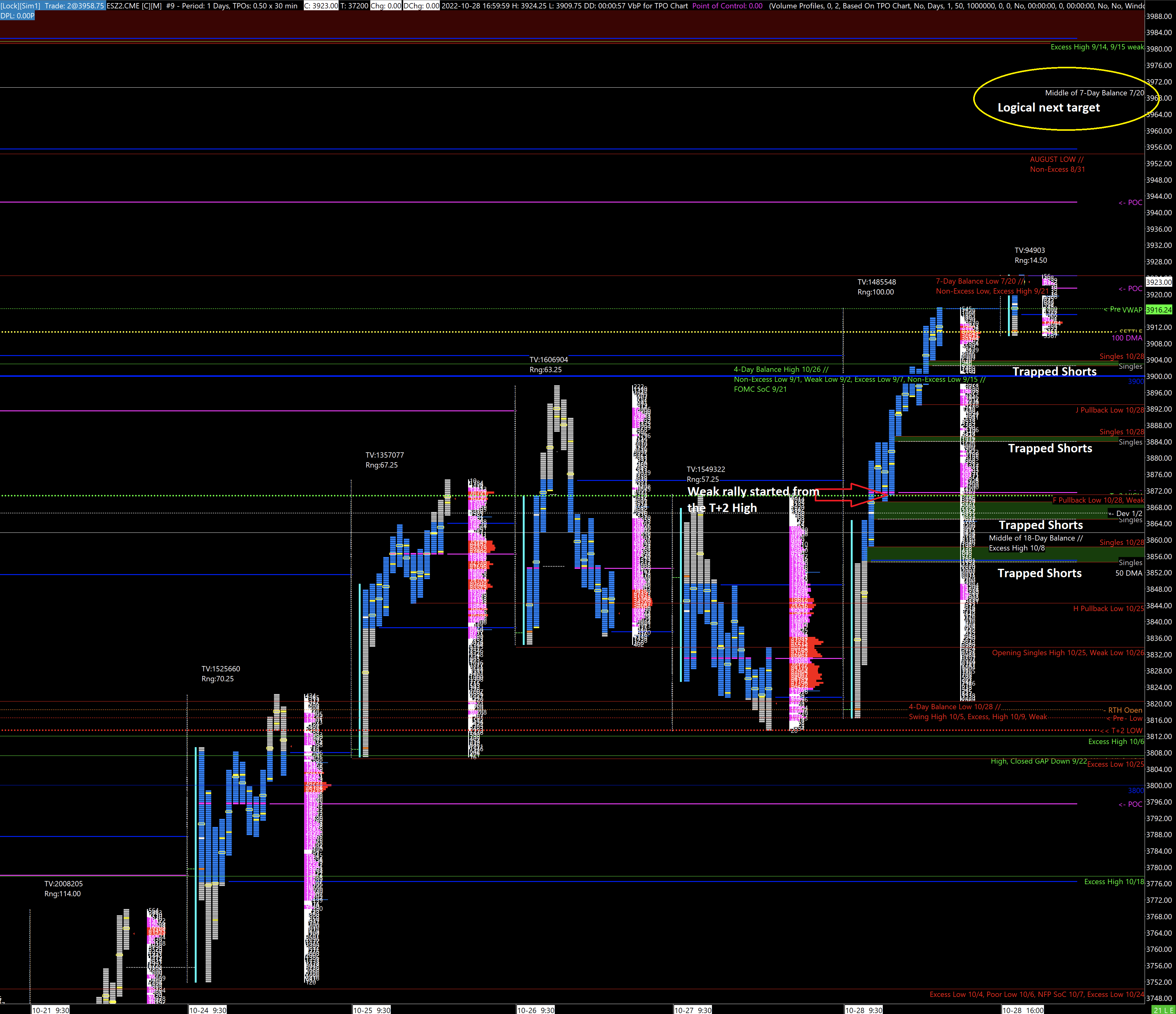 Ever since the 2022 low from 13 Oct, the market had put in decent structure while heading higher. However, Friday’s rally was predominantly overly emotional buying that is likely to have weakened the market. There are currently 5 trapped short positions holding up the ES and 4 of those were from Friday.