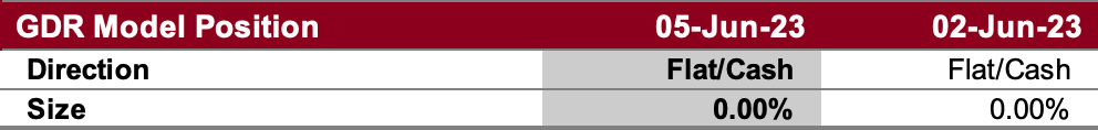 The GDR Model remains in cash, but is on the verge of opening a long position.
