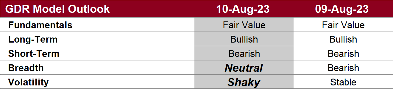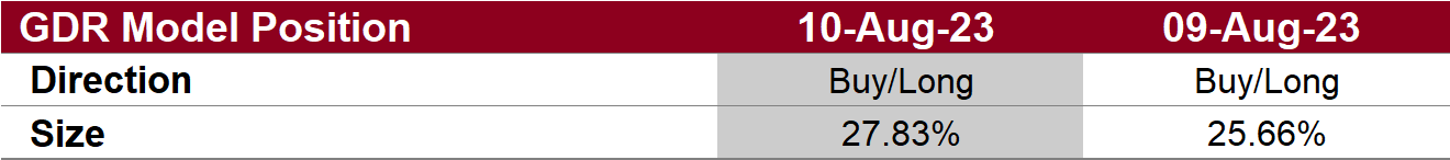 The GDR Model has gone back to slightly long again. These are small positions and should be interpreted as the market being indecisive at this point.