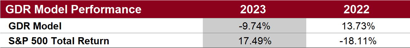 This year has been challenging for the GDR Model’s style due to low confidence in the market at the start of the year.