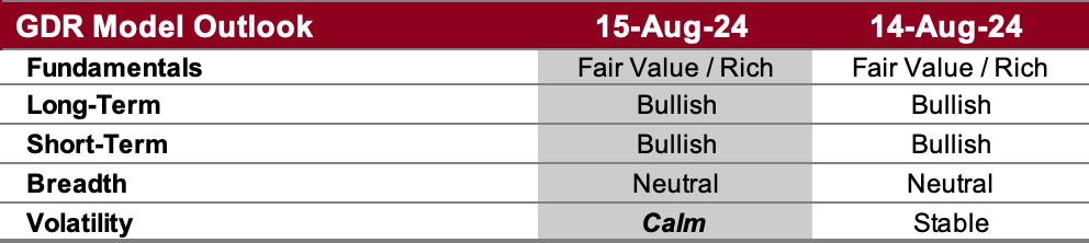 The GDR Model has tactically added a long position, but given the recent weakness in the market, there is a chance it might be closed relatively quickly.