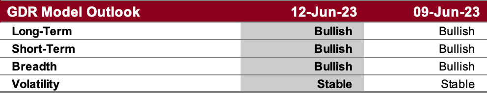 The GDR Model is now bullish following the recent breakout from consolidation.
