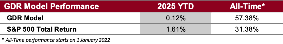 The GDR Model is effectively flat at this point as the market continues to show indecision on direction.