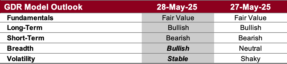 Breadth Outlook (as of 27 May 2025): Bullish. Today’s upgrade may signal a fresh upward swing coming.