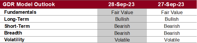 The GDR Model is now neutral to bearish as the market has weakened throughout the last two weeks. Time will tell whether that weakness will be sustained and leads to a more serious sell-off.