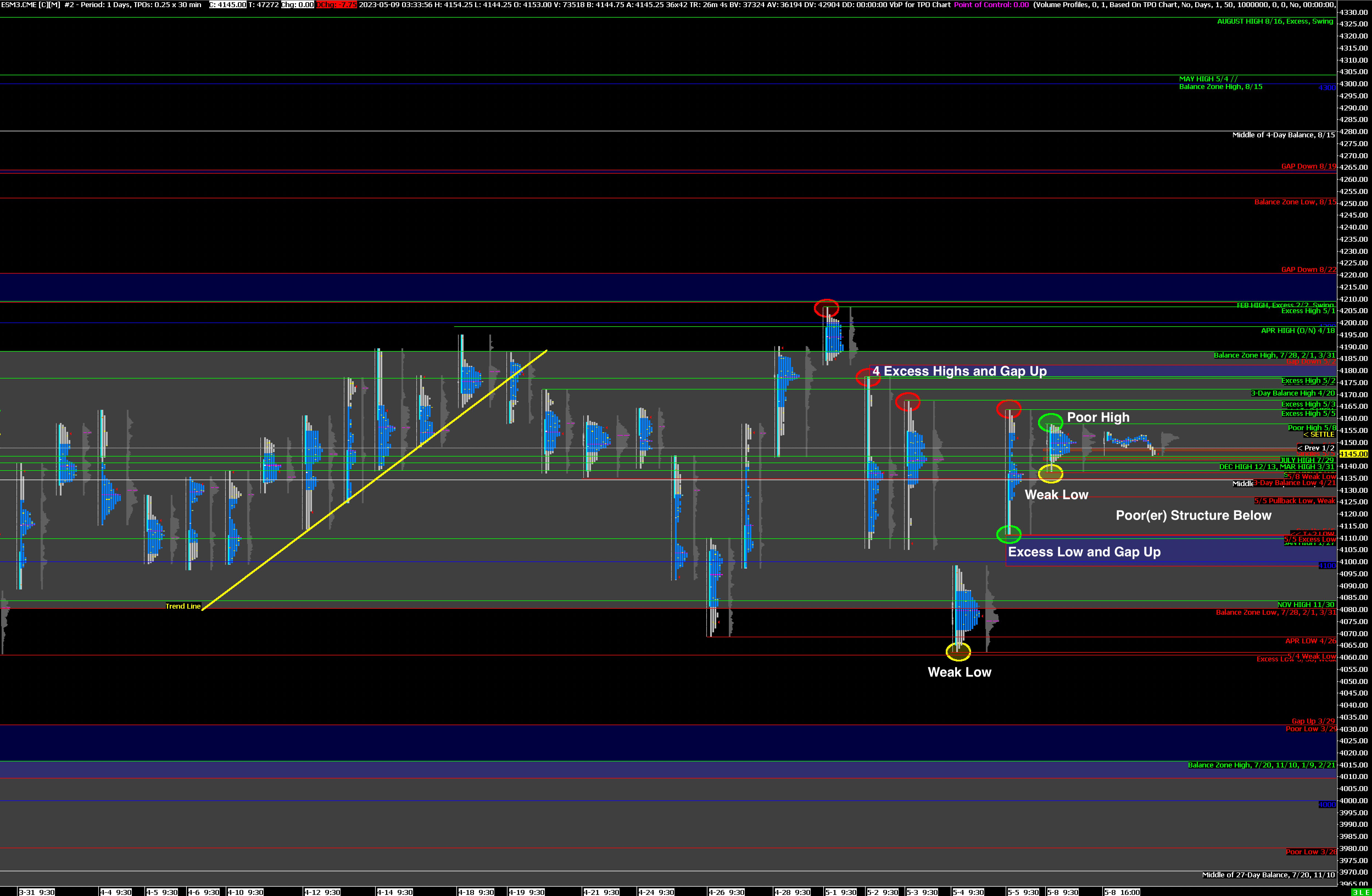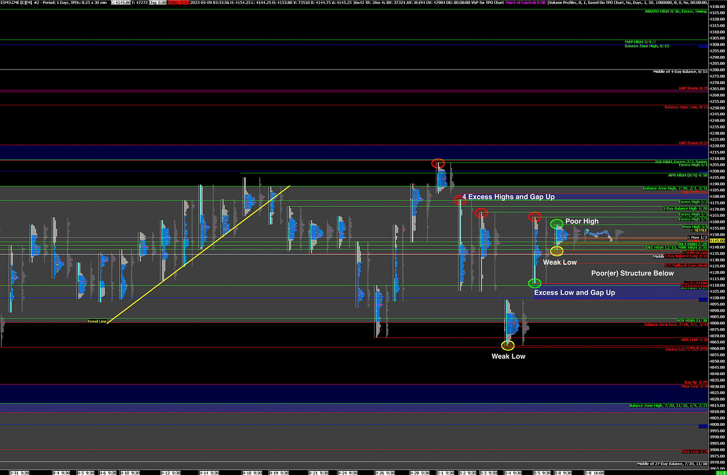 The market put in a Balanced day leaving behind a Weak Low and a Poor High. Once again, the character of trading suggests short-term, weak hands traders are back to dominating the market. There is a good chance that the market may be waiting for the inflation data coming out Wednesday and Thursday, so don’t be too hasty to jump into trades before then.