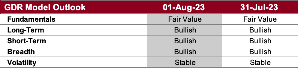 The GDR Model has been bullish across the board for several weeks now as the market has maintained a strong uptrend since May.