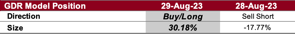 The GDR Model has returned to slightly long. These are small positions and should be interpreted as the market being indecisive at this point.
