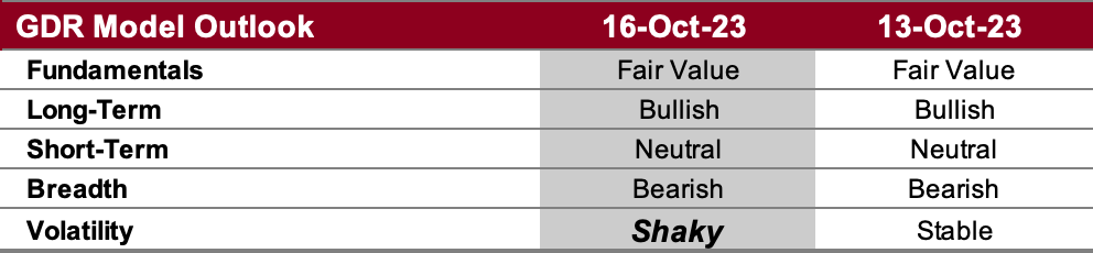 After reflecting some improvement in the market, the GDR Model picked up on some notable weakness at the close of last week. This coming week will likely be pivotal.