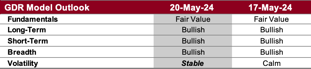 The GDR Model has a meaningful long position as the market has shown significant strength for a while.