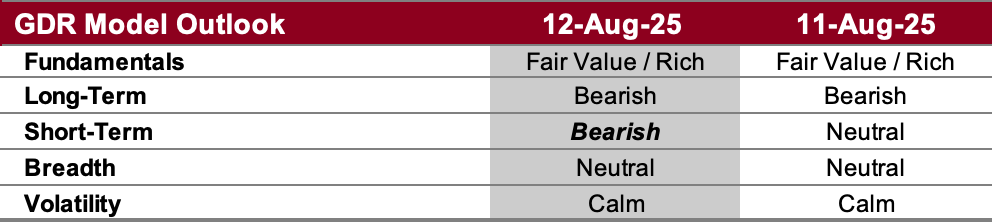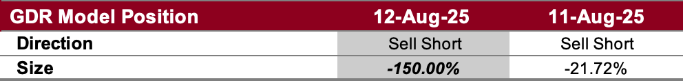 The weakness in the short-term outlook coupled with more favorable prices was enough to have the GDR Model re-open a short position.
