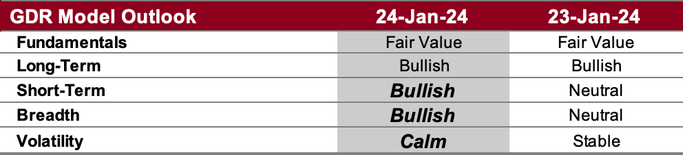 Given the recent significant strength in the market the GDR Model has once again opened a meaningful long position. Should the market weaken again it’s likely to close it or at least pare back some risk.