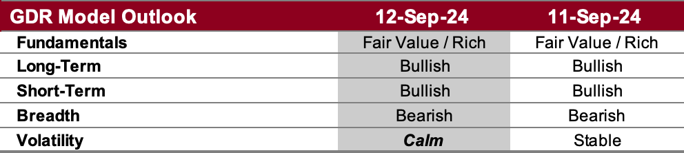 Even though the market has weakened, the GDR Model is still mostly bullish. Time will tell whether the recent weakness is temporary or persistent.