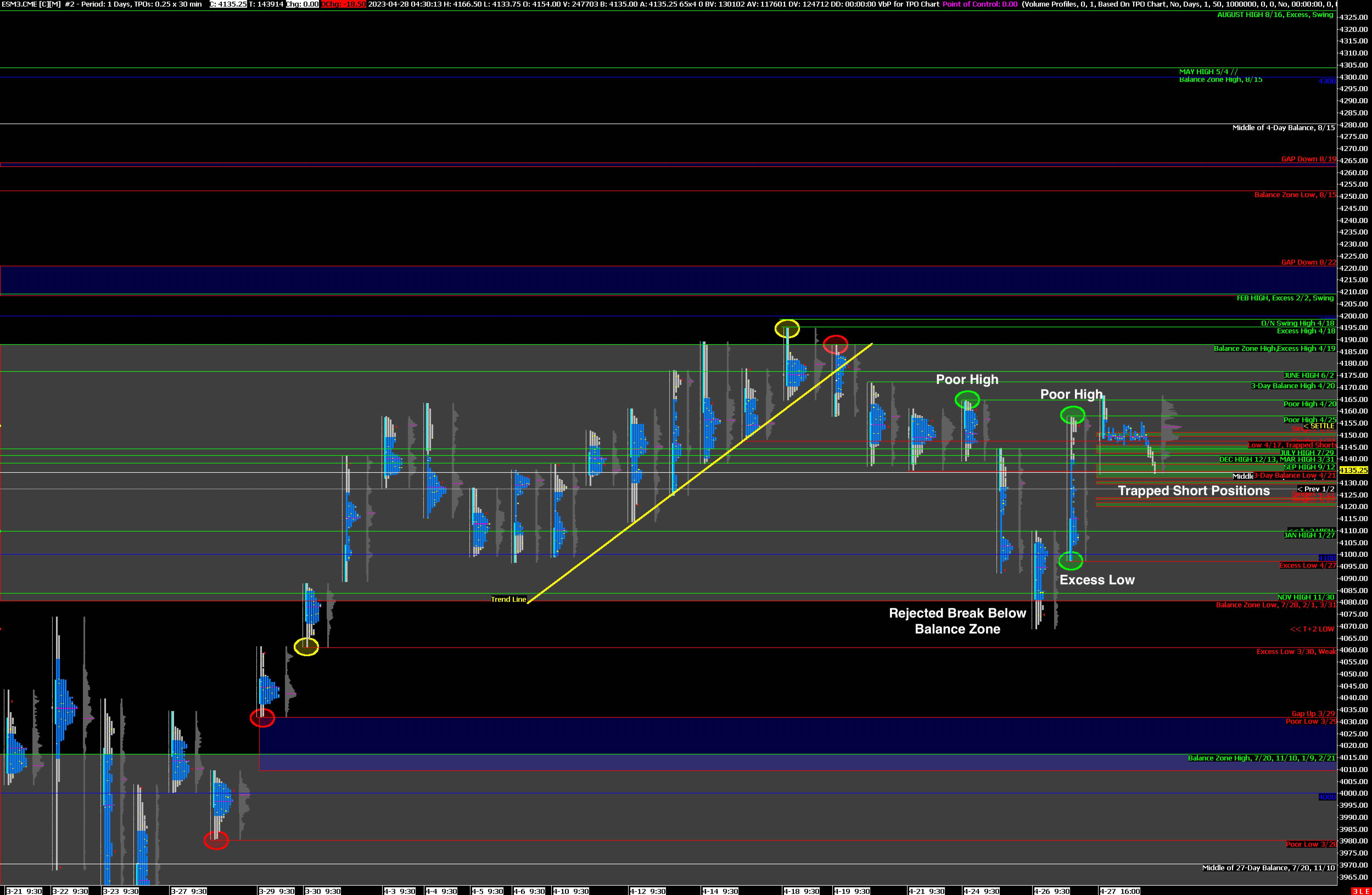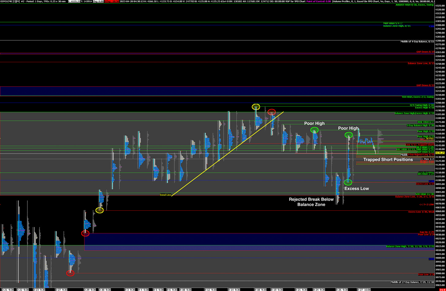 Bearish: 4135 (Short-Term Balance Low), 4100 (Go-No-Go Level), 4080 (Bottom of Current Balance Zone)
