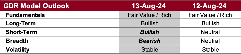 The GDR Model has tactically added a long position, but given the recent weakness in the market, it’s unlikely to be sustained for long.