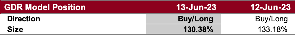 The GDR Model is now bullish following the recent breakout from consolidation.