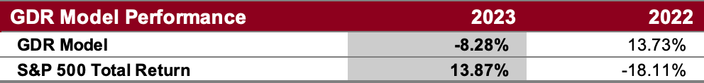 This year has been challenging for the GDR Model’s style due to low confidence in the market.