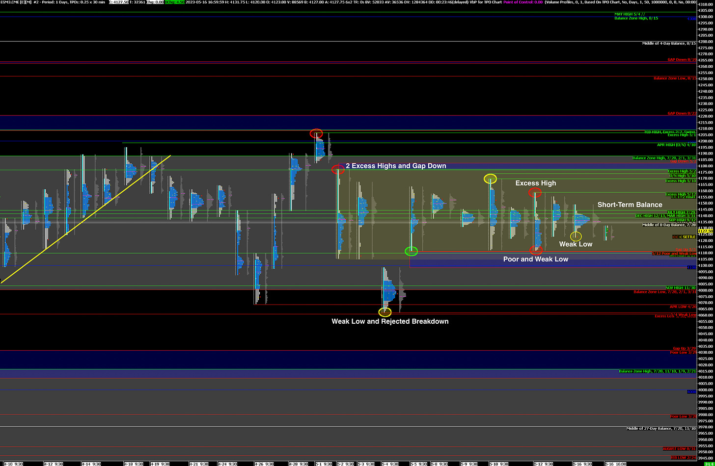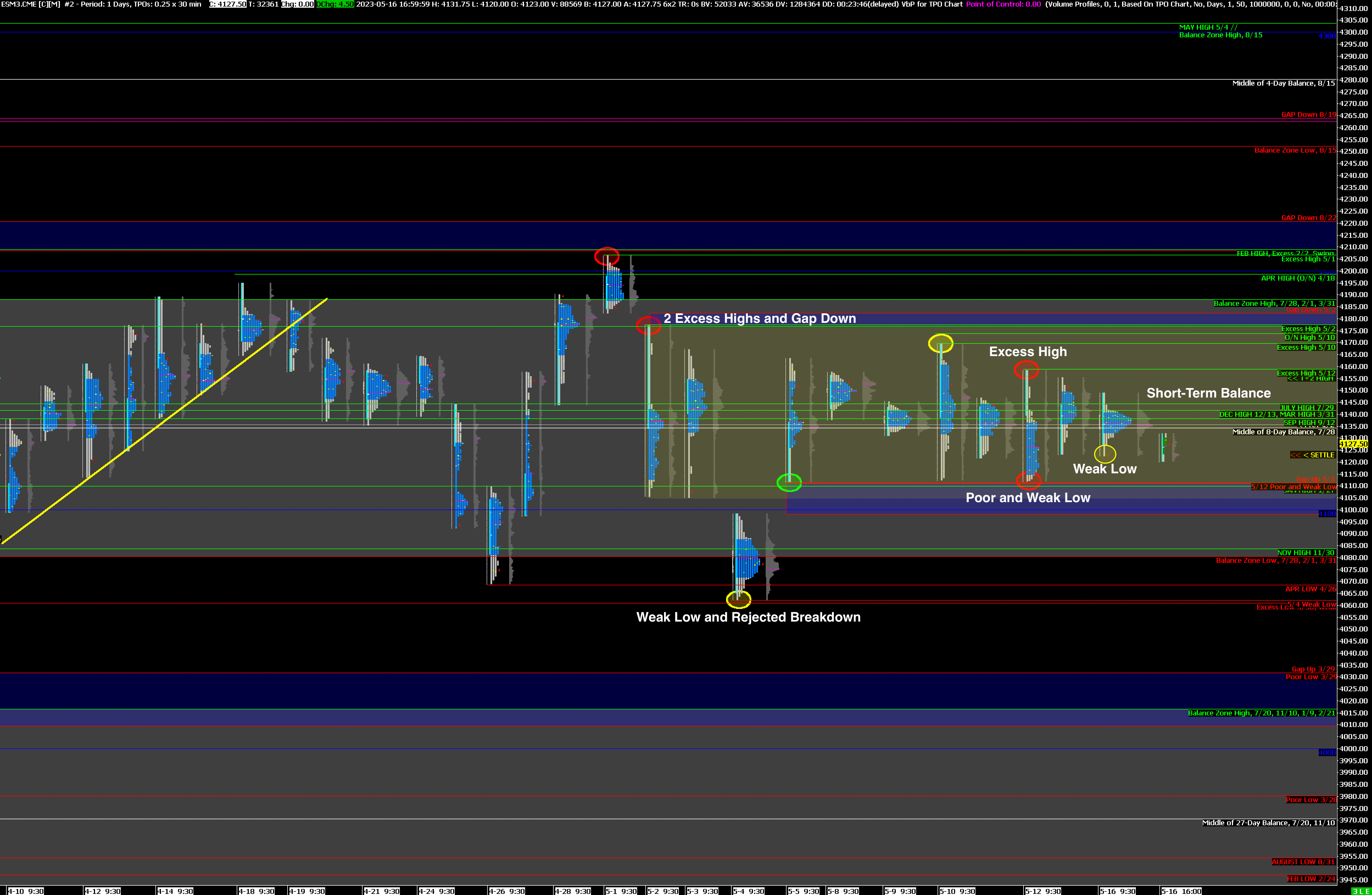 Bearish: 4123 (Weak Low), 4110 (Poor Low, Weak Low), 4080 (Bottom of Current Balance Zone), 4062 (5/4 Weak Low)