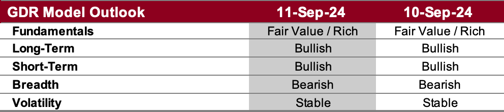 Even though the market has weakened, the GDR Model is still mostly bullish. Time will tell whether the recent weakness is temporary or persistent.