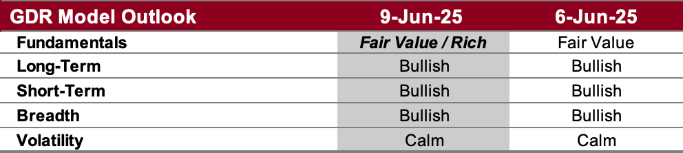 Breadth Outlook (as of 6 Jun 2025): Bullish. Breadth remains bullish, which is in line with all of the model’s components.