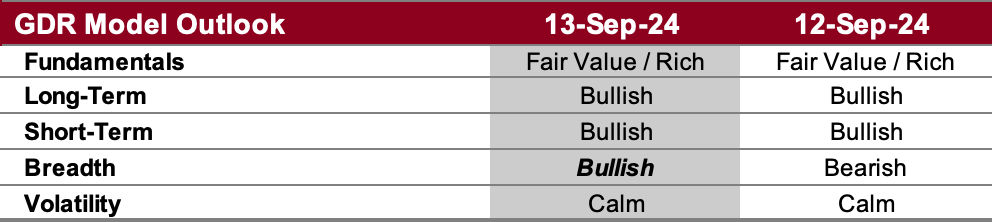 The GDR Model is mostly bullish as the market has regained most of its strength since last week’s sell-off.