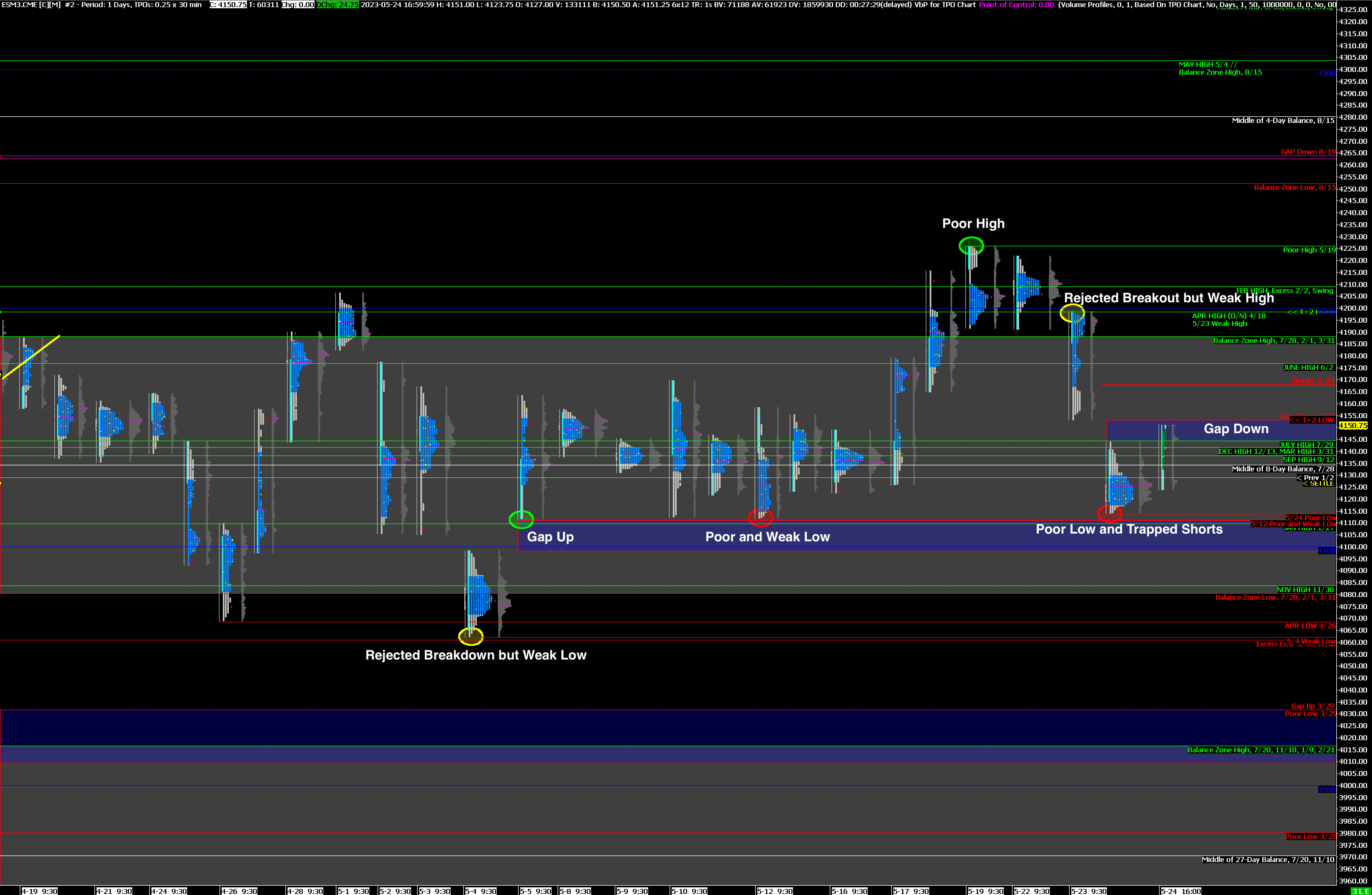 Bullish: 4153 (Closes Gap Down), 4188 (Top of Lower Balance Zone), 4198 (Weak High, April High), 4226 (Poor High)