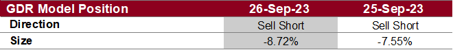 The GDR Model is now neutral to bearish as the market has weakened throughout the last two weeks. Time will tell whether that weakness will be sustained and leads to a more serious sell-off.