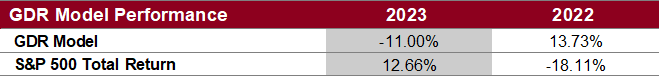 This year has been challenging for the GDR Model’s style due to low confidence in the market at the start of the year.