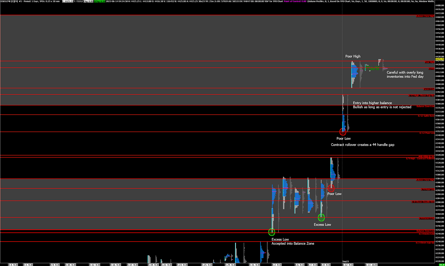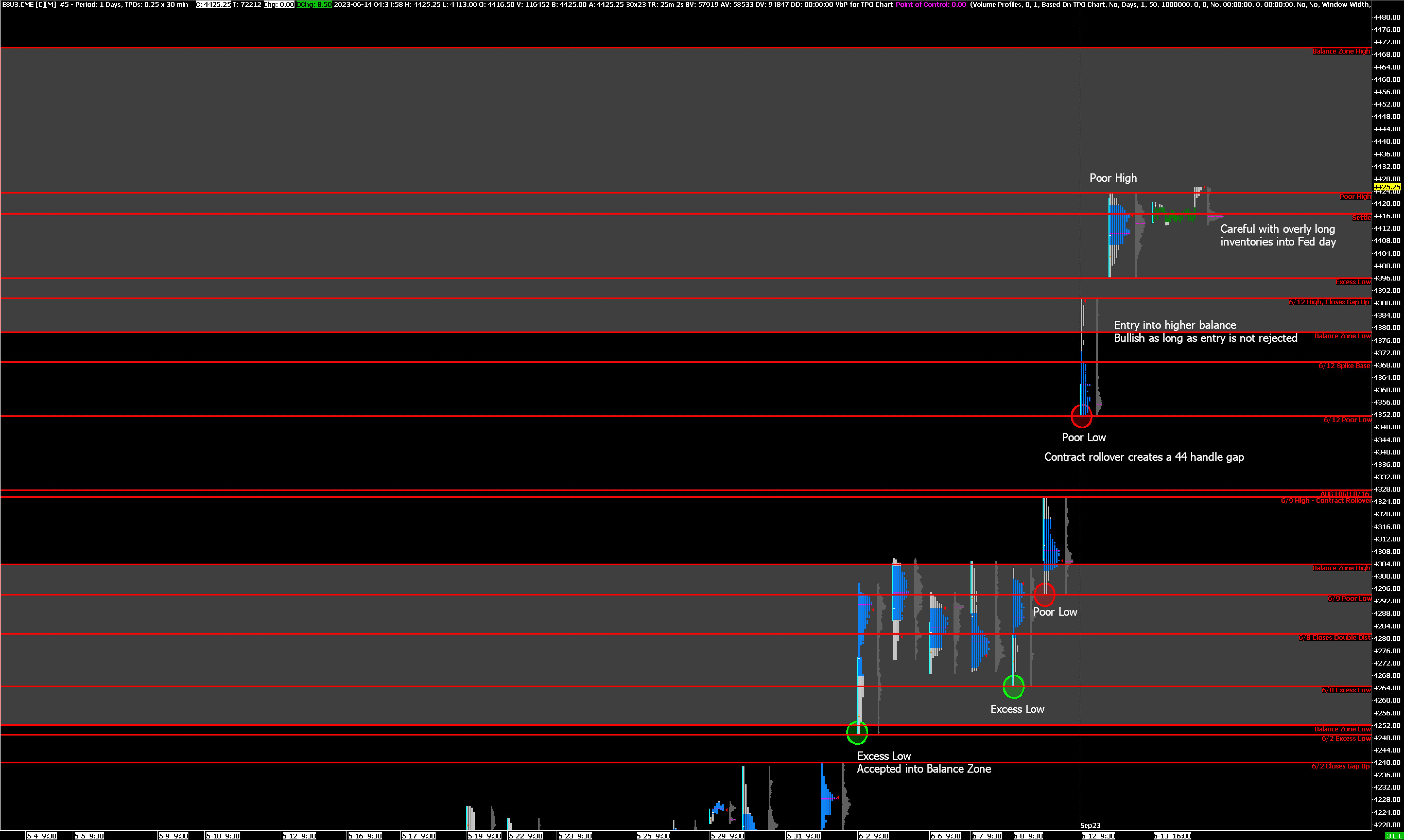 Bullish: 4424 (Poor High), 4470 (Top of Current Balance Zone), 4588 (April 2022 High)