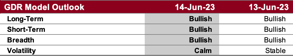 The GDR Model is now bullish following the recent breakout from consolidation.