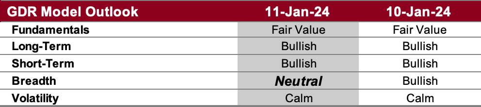 The GDR Model is bullish, but some weakness has persisted under the hood as of late.