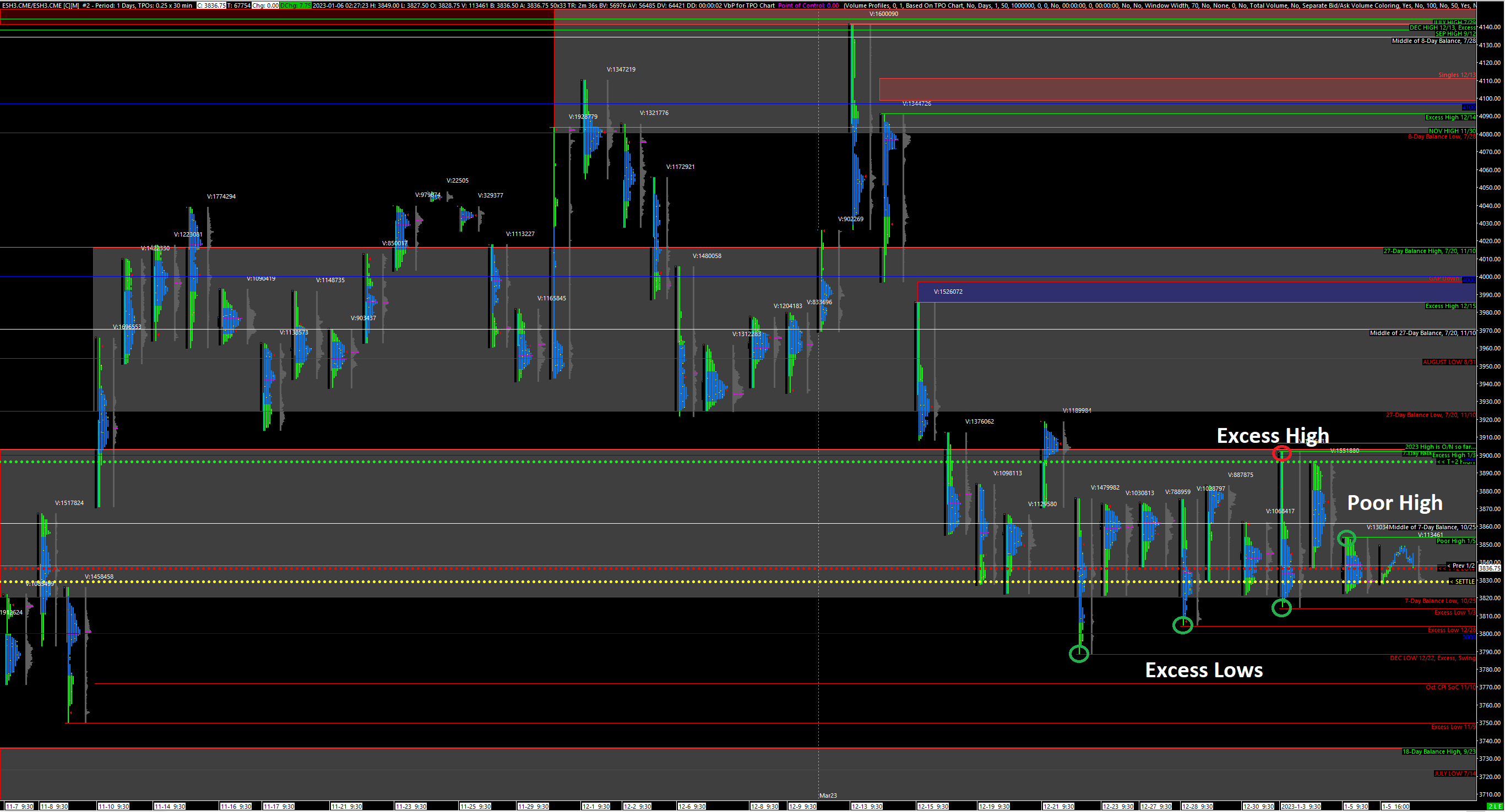 While yesterday took out 1 of the 4 Excess Lows, it failed to break below the current Balance Zone in a tight range trading day. More importantly, that yesterday left behind a Poor High makes me more confident in the Bullish scenario going into Unemployment Data today. Over at least the last trading year or so, Poor Highs and Lows have rarely avoided repair for more than a day.
