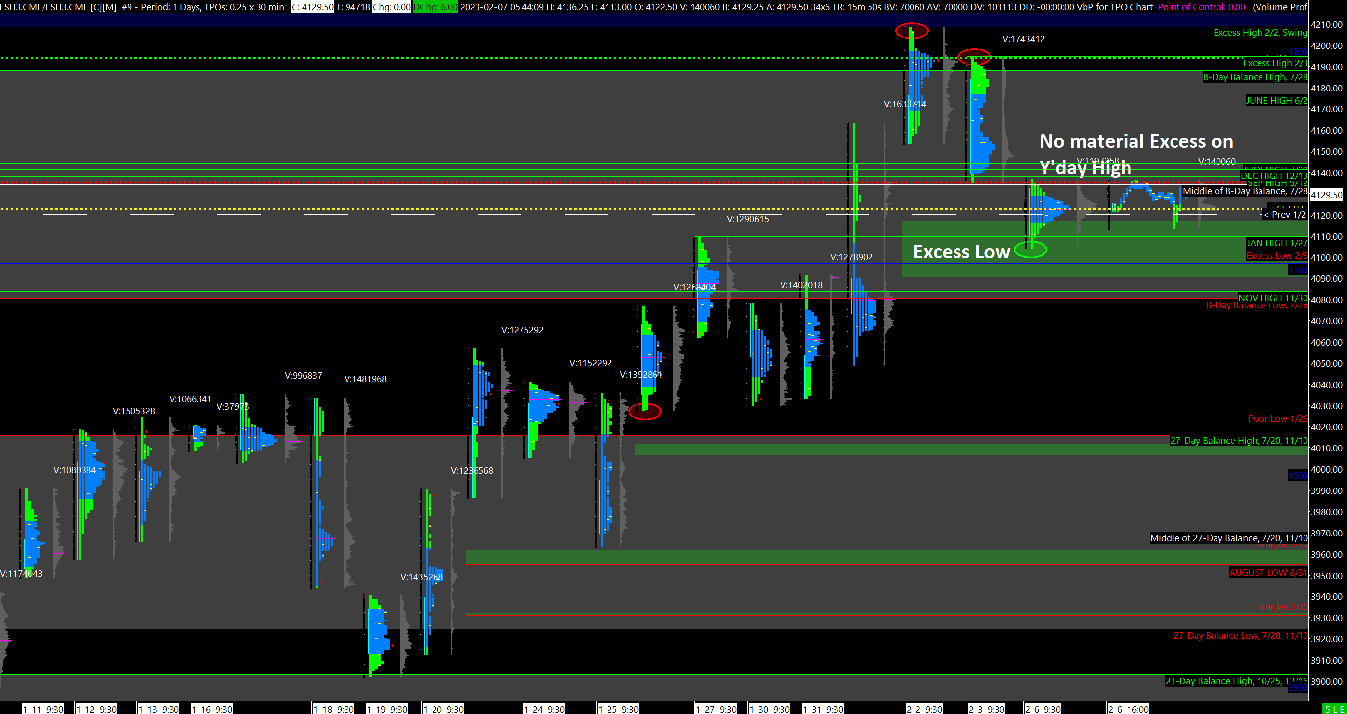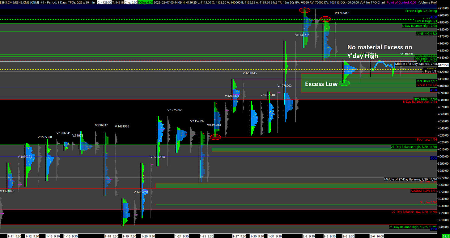 Yesterday was a Balanced Day that corrected a large chunk of the Poor Structure from Fed Day last week. Moreover, there is significant Excess on the Low, but no material Excess on the High. Therefore, today should be treated as a short-term Balance with edges on Yesterday’s High and Low. In this case, the Low looks much more secure than the High, hence the near-term outlook leans Bullish.