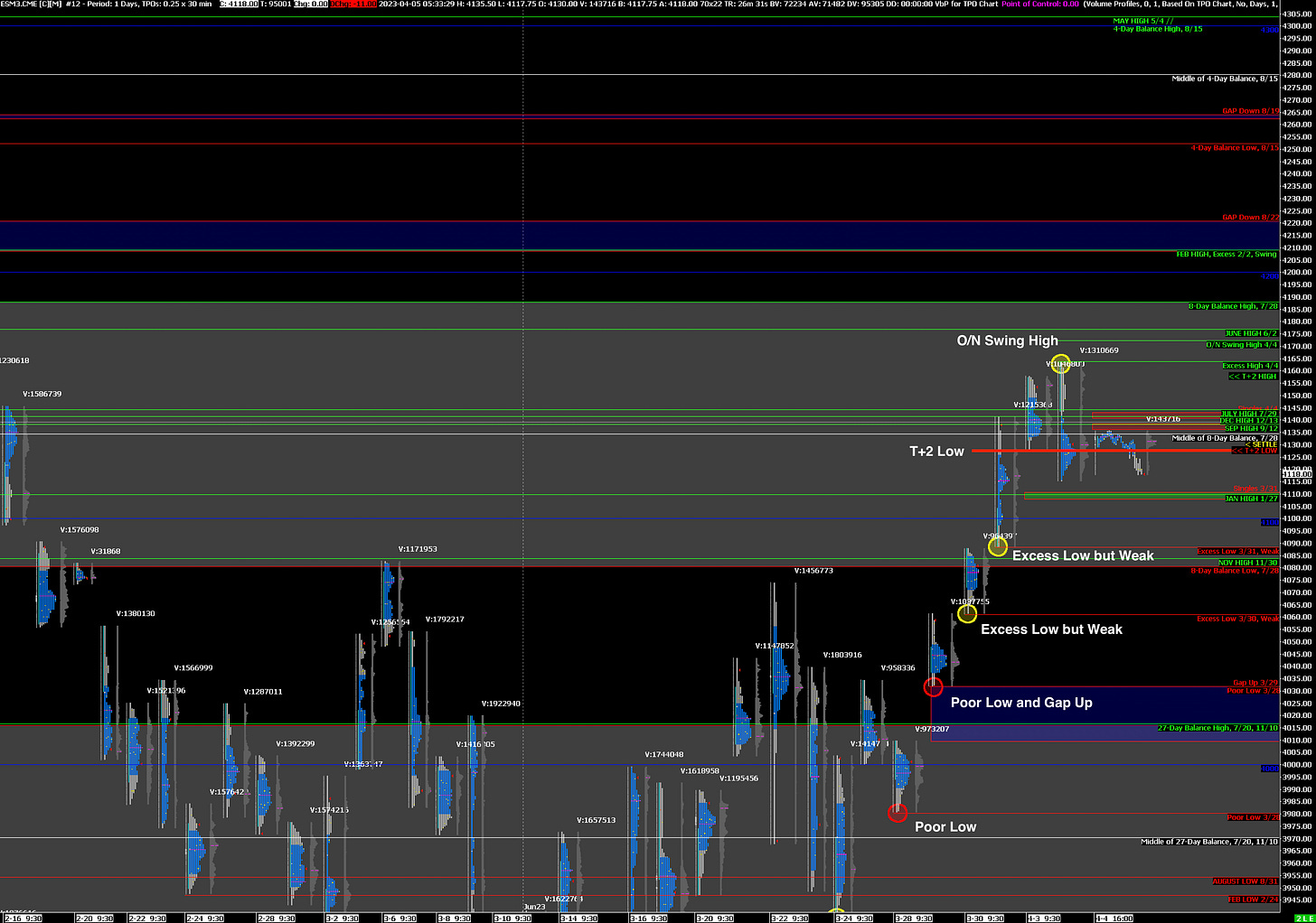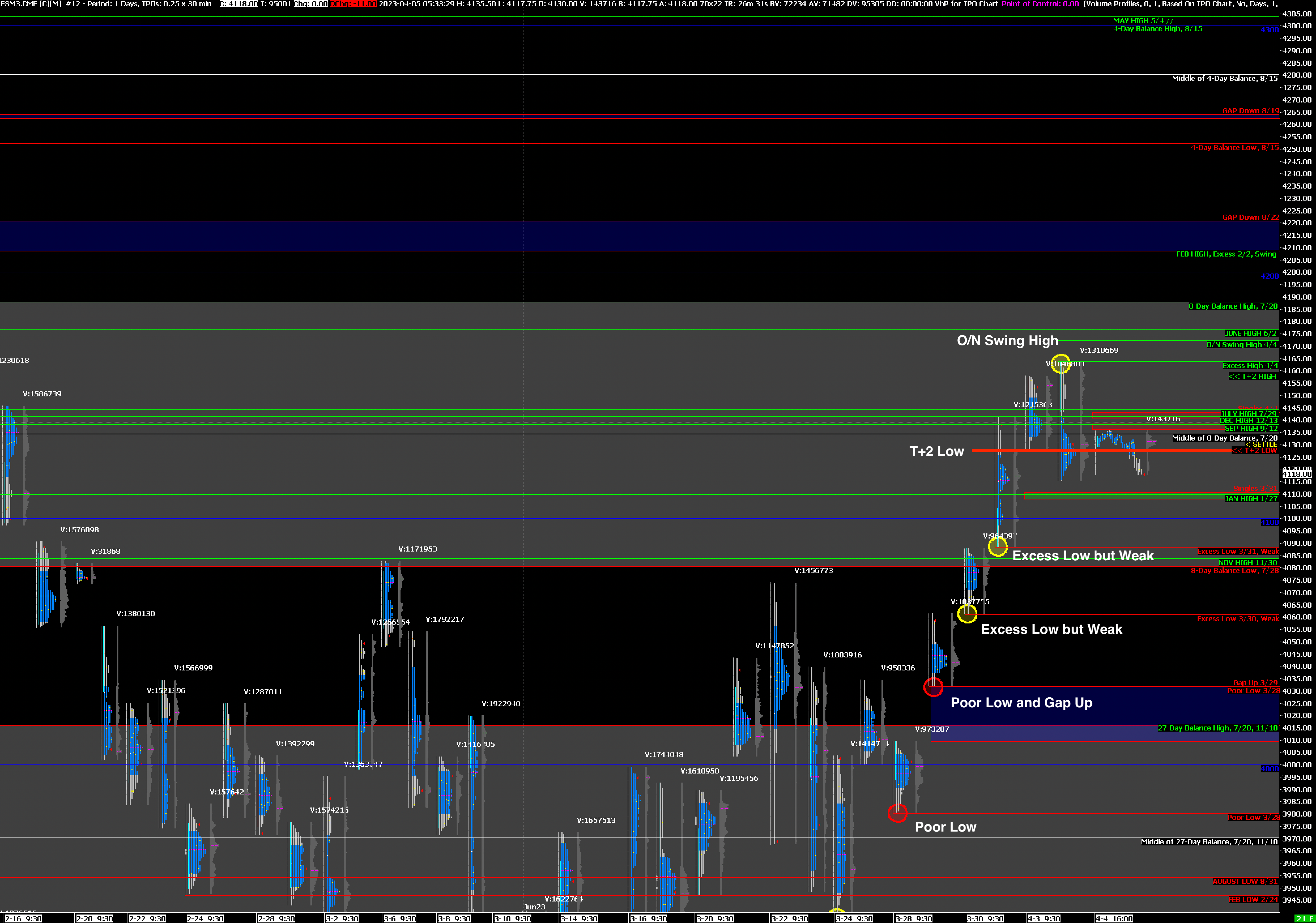 Yesterday the market gave us the Liquidation Break we have been waiting for, however there is a chance that it may have been too limited. The ES looked above the 3/31 High (now T+2) early in the trading day before failing the Breakout. It is now trading below the T+2 (Settlement) Low with plenty of Poor Structure below to tackle.