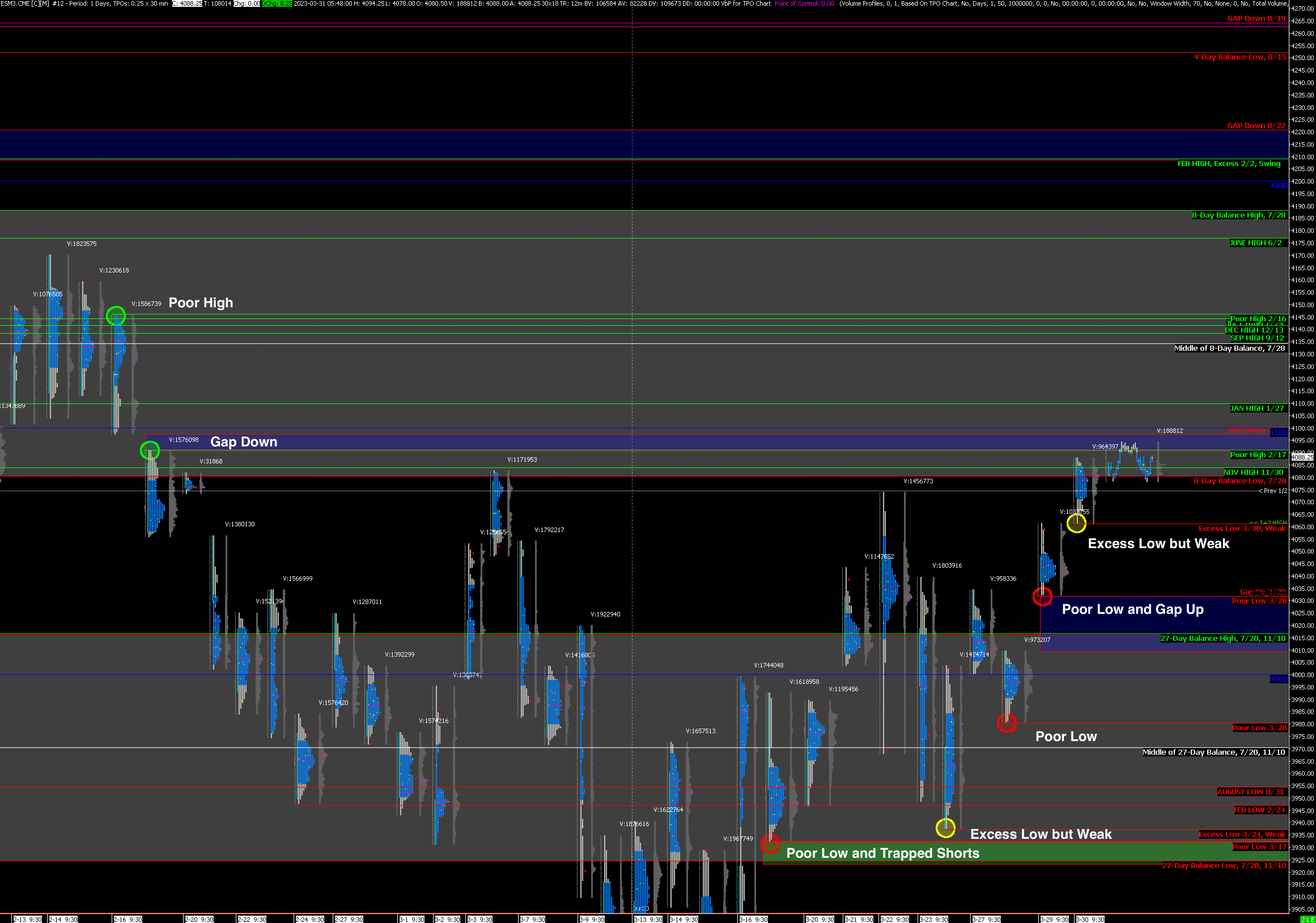 Bearish: 4080 (Upper Balance Zone Low), 4032 (Poor Low), 4010 (Closes Gap Up)