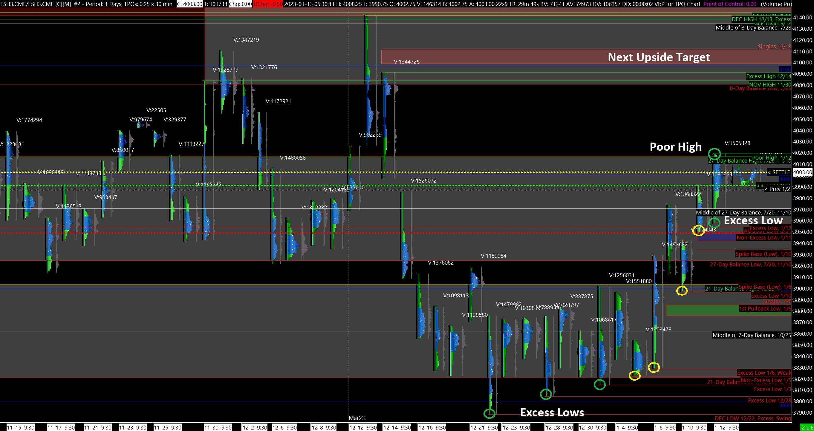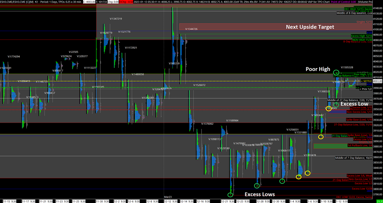 The key for today/early next week is whether the ES hangs around in the current Balance Zone. Should that happen then the next logical downside target is the bottom of Balance at around 3930.