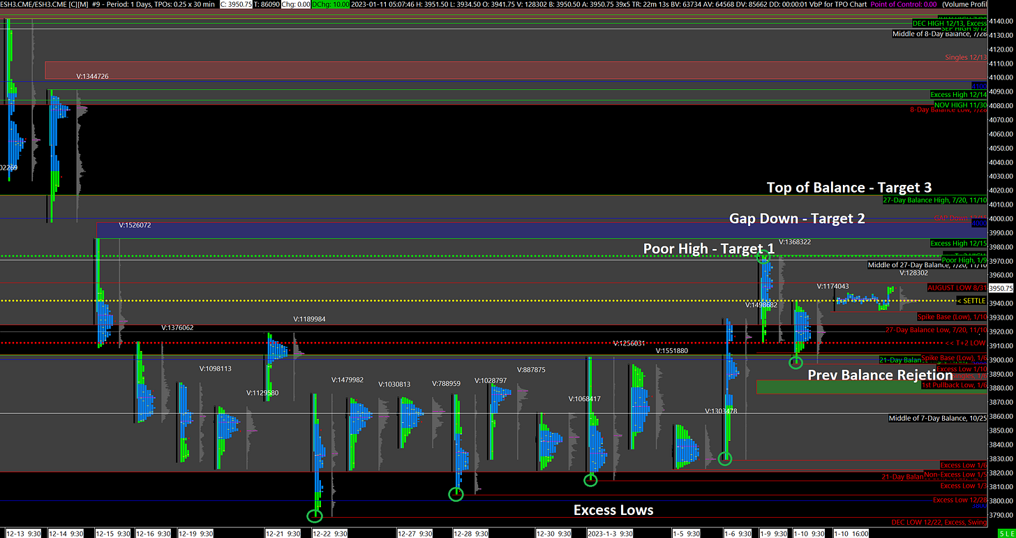 Yesterday was a structurally sound up day with plenty of backing and filling. The market left behind an Excess Low and rejected an attempt to re-enter the previous Balance Zone.